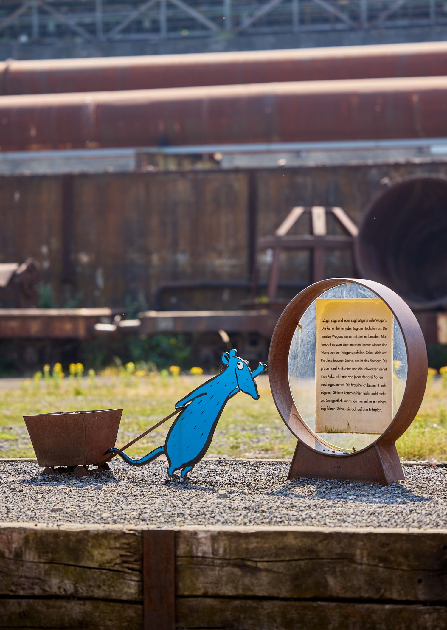 Unser Museumsmaskottchen „Ratte“ kennt sich auf dem Gelände der Henrichshütte richtig gut aus. Ein Rätsel möchte sie gemeinsam mit den Kindern unbedingt lösen: wie wird aus ein paar Steinen Eisen hergestellt? Und los geht’s: ausprobieren, entdecken, Spaß haben. Zum Glück hat Ratte eine Kiste für die Klasse gepackt. Werkzeuge, Schutzkleidung und andere Materialien aus der Hüttenzeit wecken Neugier. Gemeinsam erschließen die Kinder den bis dahin fremden Raum Industrie als Teil ihrer Umwelt.